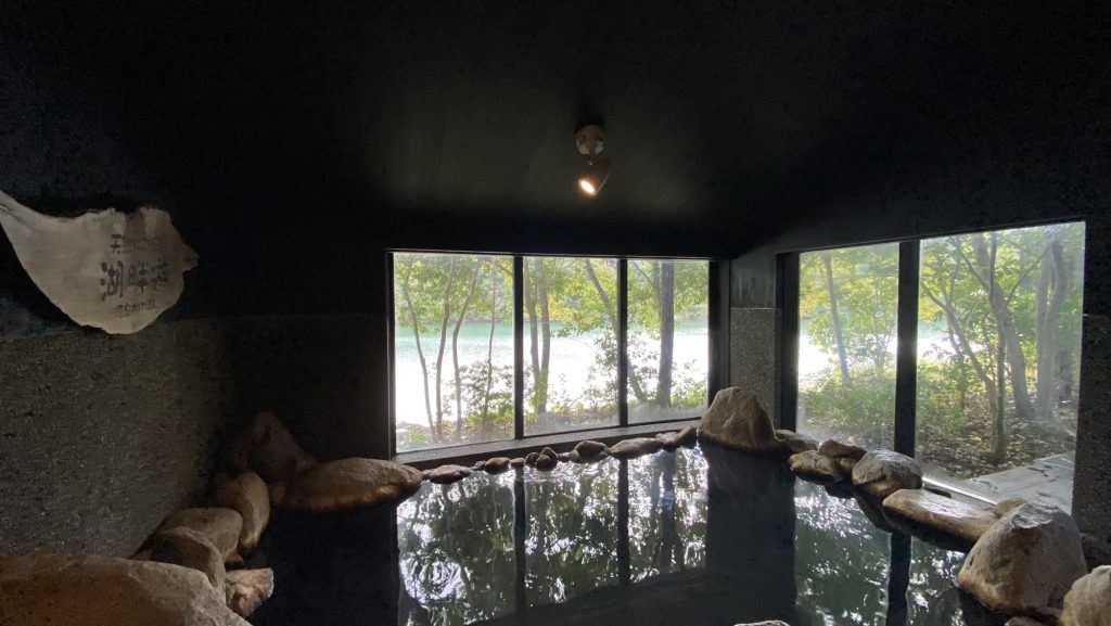 湖畔遊の魅力の一つは、その温泉施設です。敷地内から湧き出る黄金色の自家源泉を贅沢にかけ流しで使用しており、国内でも非常に珍しい天然にごり湯を楽しむことができます。この温泉は、「天然にごり湯アイソトニック温泉」です。温泉の浸透圧が人間の体とほぼ同じため、長時間入っても体への負担が少なく、ミネラルが豊富で滑らかな浴感が特徴で、美肌効果も期待できます。大きな窓からは湖畔の景色が広がり、四季折々の風景を楽しむことができます。残念ながら露天風呂は水風呂ですので、個人的な意見ですが、夏の暑い日におすすめな温泉施設だと思います。