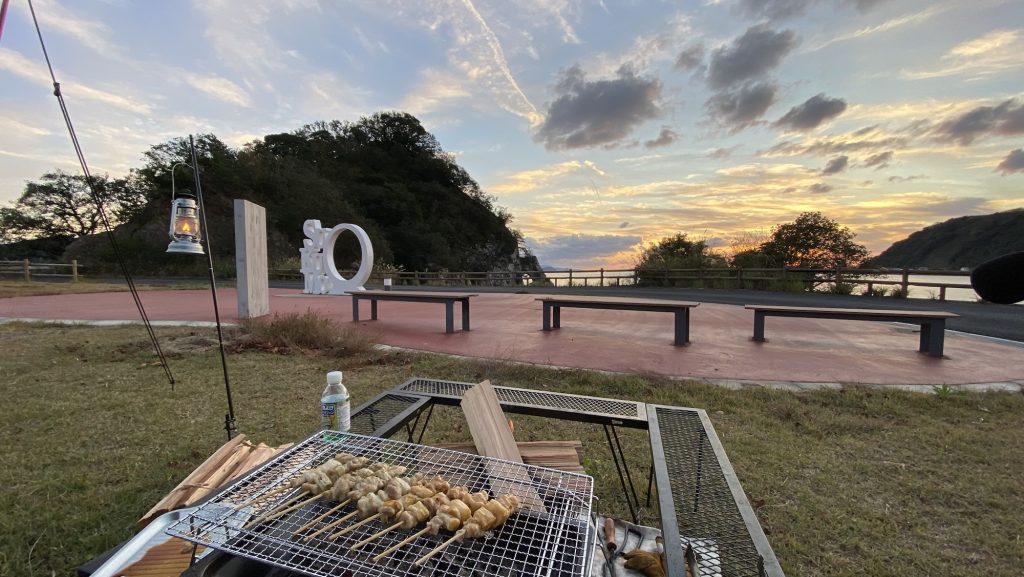 さて、今回のちっと秋キャンの舞台は、道の駅 すくも サニーサイドパークキャンプ場です。こちらのキャンプ場、高知県宿毛市に位置する魅力的なキャンプ場で、2023年5月にリニューアルオープンし、宿毛湾に突き出た小さな岬の先端部分全体がキャンプ場となっています。