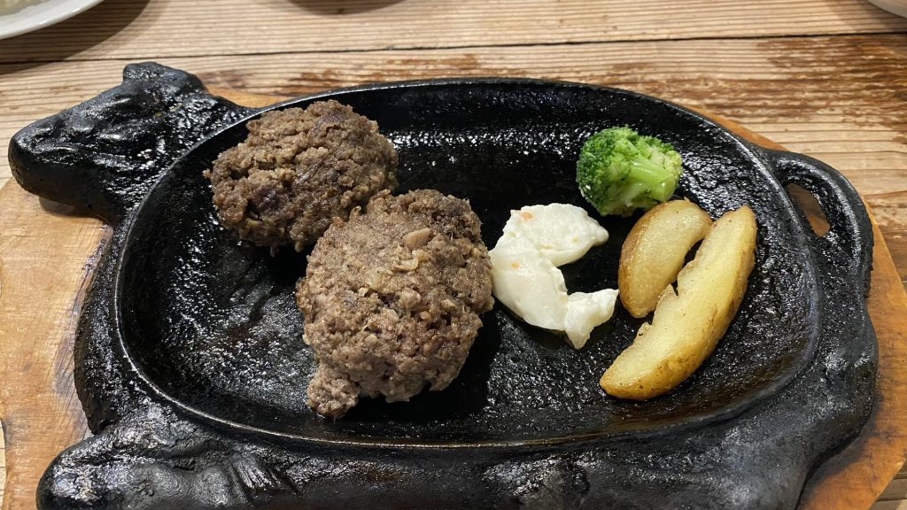 沖縄最後の晩餐は男3人組でステーキハンバーグをいただきました。咲夜、別のお店でいただいた沖縄んブルーがあったので一緒にいただきましたが、今回の沖縄料理は全て当たり!美味しかったです