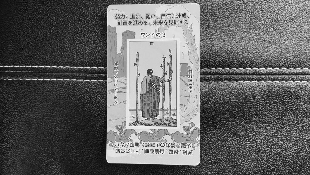 ワンドの3(正位置)は、「準備が整い、未来へ踏み出す」「視野が広がる」「チャンスが近づいている」というメッセージを持ちます。これまで努力してきたこと・考えてきたことが、いよいよ行動に移り始め、成果へ向かって動き出すタイミングであることを示します。