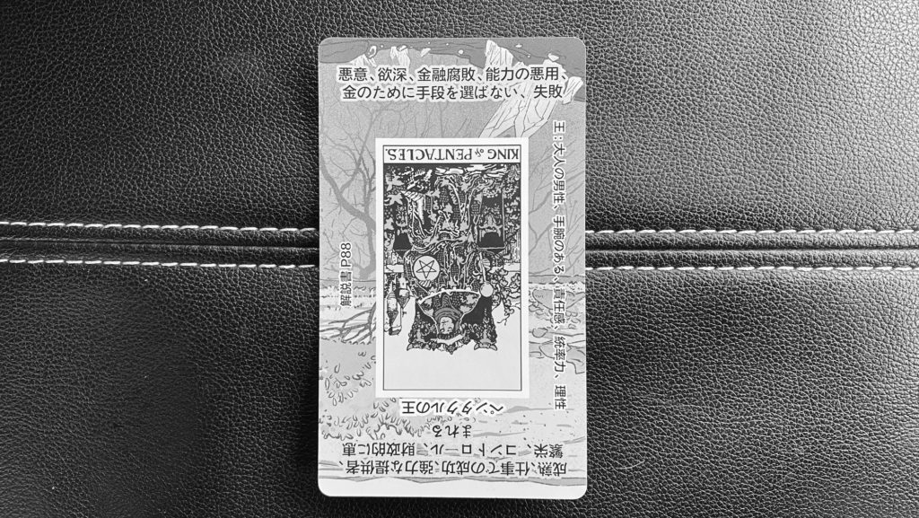ペンタクルの王(逆位置)は、「執着・固執」「お金や物質面の偏り」「頑固さ」「コントロールしすぎ」を象徴するカードです。本来は“豊かさを生み出す王”ですが、逆位置では「守りに入りすぎて視野が狭くなる」「物質的・現実的な心配が先に立つ」といった状態になりがちであることを示しています。