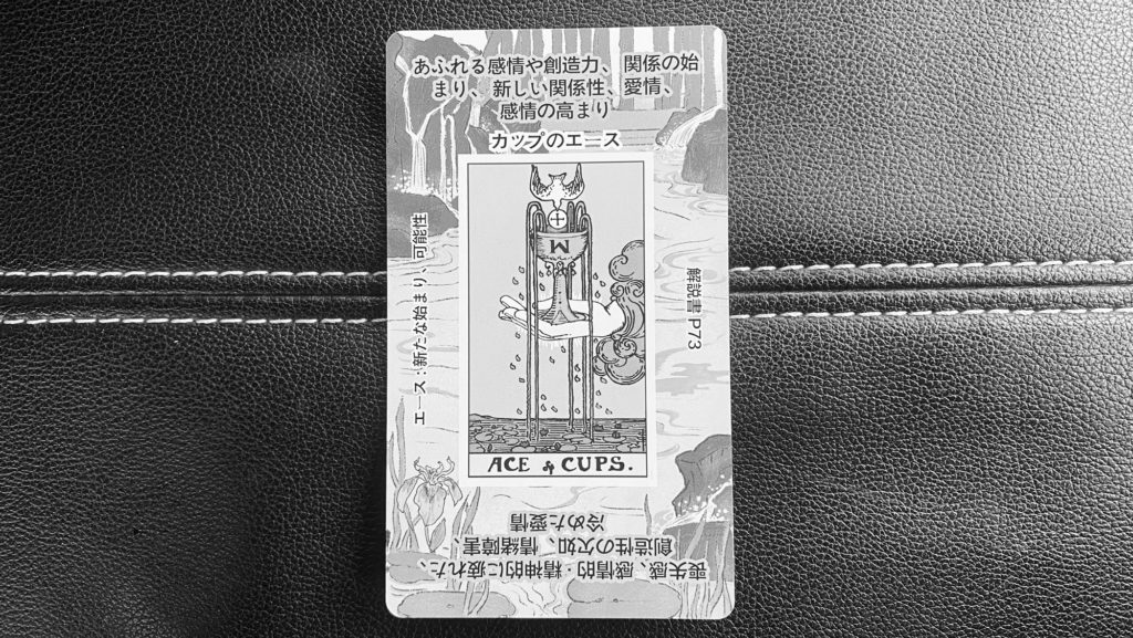 カップのエース(正位置)は、「新しい愛」「心が満たされるはじまり」「感情の再生」「インスピレーションの誕生」を象徴する、とても幸福度の高いカードです。カップ=感情・愛情の“源”が溢れ出すイメージで、心が満たされる出来事や、新しい愛・好意・創造性が生まれる暗示。「心が動く瞬間」が今日の鍵です。
