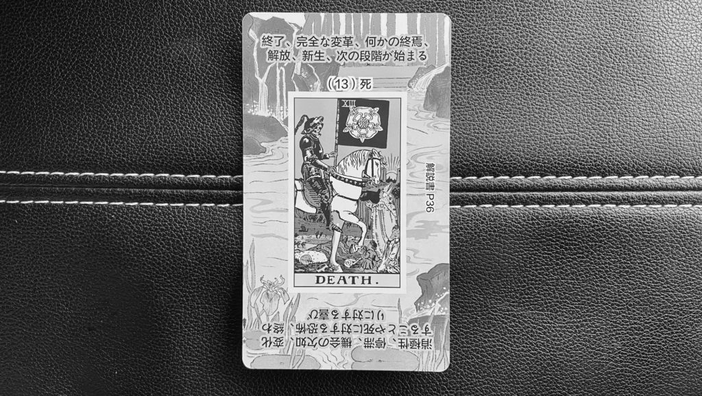 死(正位置)は、「完全な終わりと不可逆の変化」「脱皮」「新しい章の始まり」を象徴します。怖い印象とは裏腹に、タロットではとても重要で前向きなカード。もう役目を終えたものが、はっきりと終わることで、次のステージへ進む準備が整ったことを示しています。中途半端な継続や未練はここで断ち切られ、“戻らない変化” が起こる、または起こすべきタイミングです。