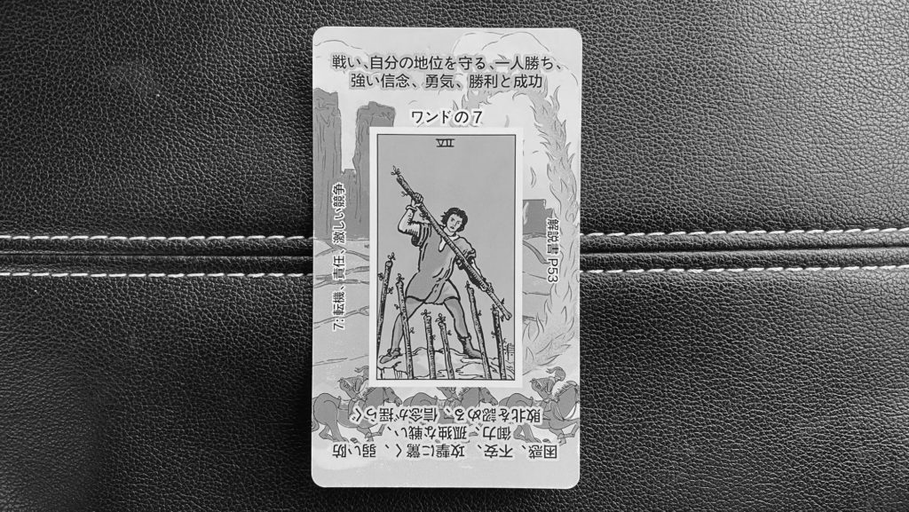 ワンドの7は、「防衛」「主張」「立場を守る」「競争」 を象徴します。今日は「譲らなくていい日」。周囲の意見や空気に押されそうでも、あなたの考えや選択は間違っていません。自信を持って立場を守ることが大切