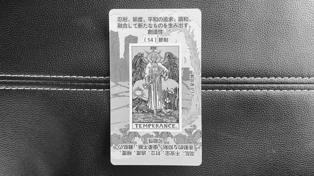 節制は「調和」「バランス」「統合」「穏やかな流れ」 を象徴します。今日は「ちょうどいい所を見つける日」。極端に走らず、頑張りすぎず、怠けすぎず。自然体でいることが最善になります。急な変化や決断より、微調整・中和・歩み寄りが吉。