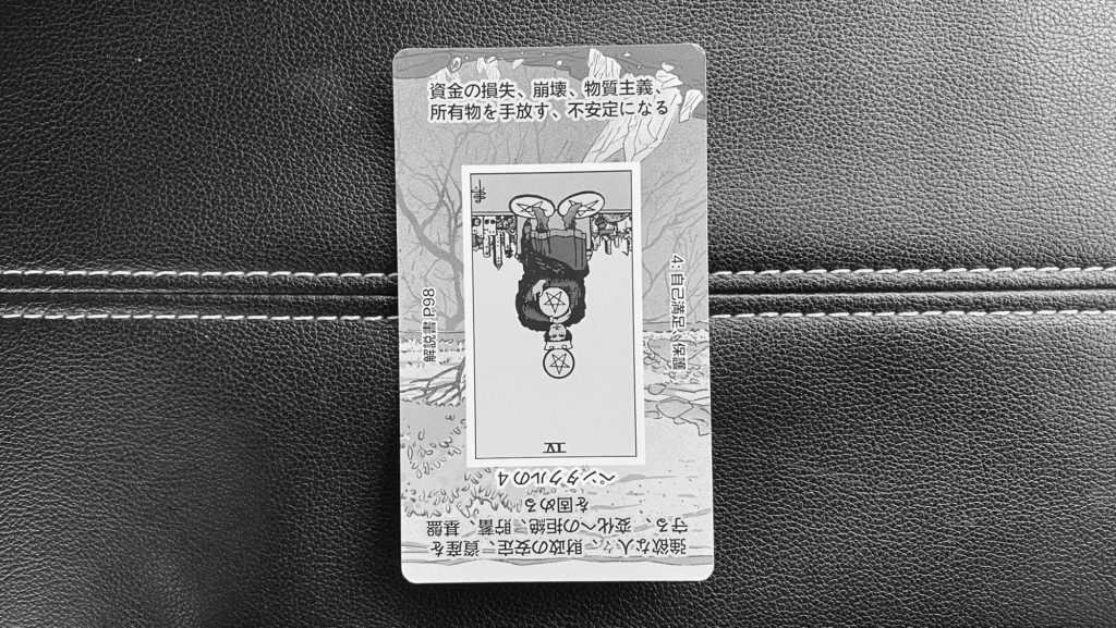 ペンタクルの4・逆位置は「手放し」「緩み」「解放」「価値観の見直し」 を象徴します。今日は「少し手を開いていい日」。これまで必死に守ってきたものが、実はもうそこまで固く握らなくても大丈夫だと気づく瞬間がありそうです。手放すことで、軽くなる。そんな流れが生まれます。