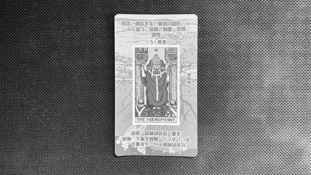 教皇は、「伝統」「学び」「助言」「正しい道」「精神的な導き」 を象徴します。今日は「王道を選ぶことで安心できる日」。奇抜な選択や冒険より、実績のある方法・正しい手順 を選ぶと物事がスムーズです。迷っていることがあるなら、自己判断だけでなく信頼できる人の意見を参考にする と吉。