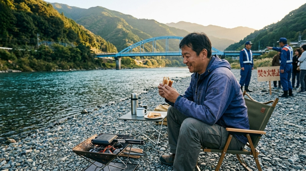 「サンドイッチデー」に、最高の思い出ができました。実を言うと、私は焚き火で焼くホットサンドが何よりも大好きです。今日も、いの町の波川まで行って、仁淀川のせせらぎを聞きながらホットサンドをいただいてきました。ところが、食べている最中に「焚き火禁止命令」が出てしまったんです。消防団員の方が回ってこられたのですが、幸いなことに、ちょうど全て食べ終えて片付けようとしていたタイミングでした。命令にはもちろん従わなければなりませんが、最後の一口まで堪能できたのは、本当にラッキーだったなと思います。