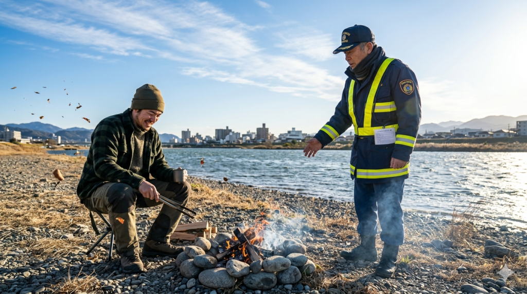有休休暇の金曜日、高知市内のお天気はおおむね晴れですが、風が冷たいし暴風。こんな日なのに川原で焚き火してました。しかし後半、消防団員さんに今日の天候は焚き火禁止ですと言われました。焚き火禁止命令を初めて言われた貴重な体験をした休日(笑)