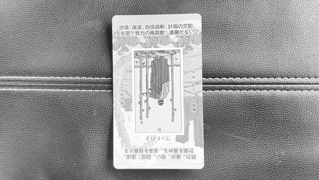 ワンドの3逆位置は、「計画の停滞」「見通しの甘さ」「準備不足」「期待外れ」 を象徴します。正位置の「展開・拡大」が、逆では 足踏みやズレ に。今日は「見直しが必要な日」。進もうとしている方向、そのままで大丈夫か一度チェック。焦って前に進むより、土台や計画を整え直すことが重要。