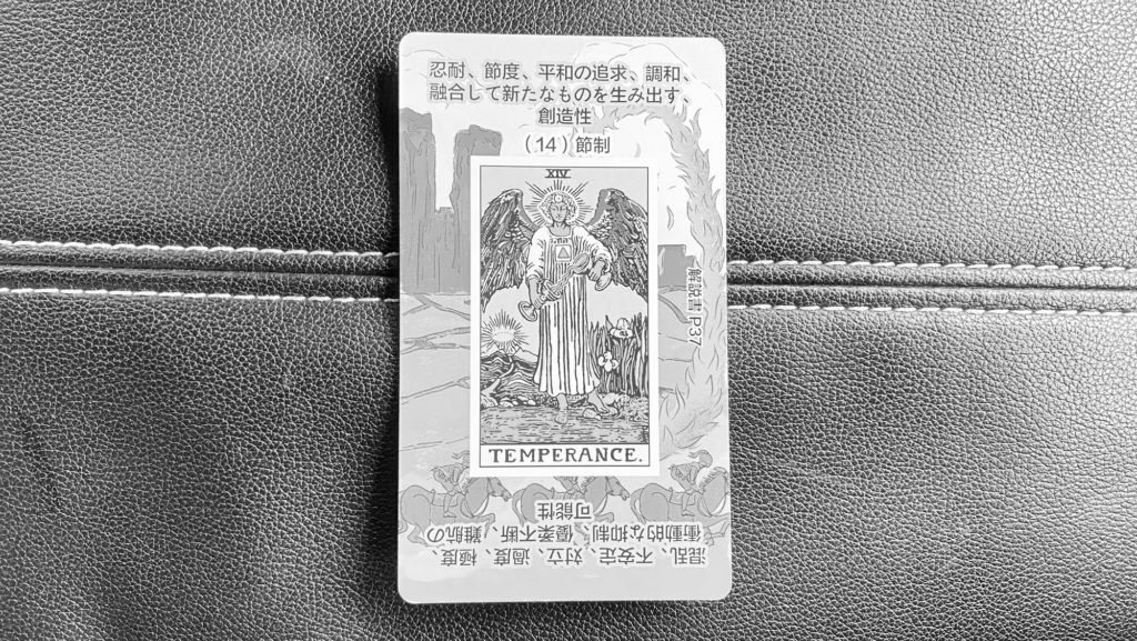 節制は、「調和」「バランス」「融合」「穏やかな流れ」 を象徴します。激しさではなく、“整える力”が働くカード。今日は「整えることでうまくいく日」。無理に進もうとするより、バランスを取ることが重要。極端に走らず、ちょうどいい加減を見つけることで物事がスムーズに流れます。